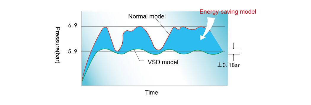 Значного ефекту енергозбереження можна досягти за допомогою постійного контролю тиску. Коливання тиску можна контролювати в межах 0,01 МПа.