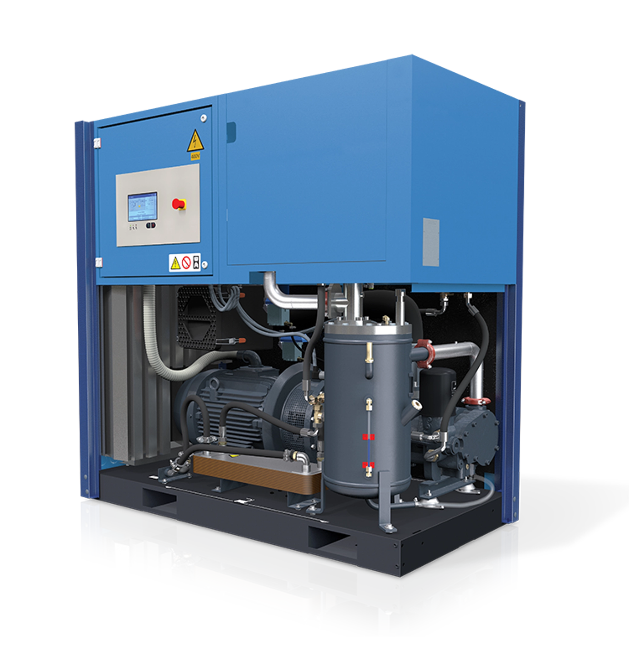 У стандартній комплектації компресори оснащені енергозберігаючим електродвигуном IE4. - Вентилятор з механічним приводом, регульований термостатом