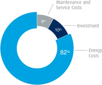 Найвитратнішим компонентом при експлуатації компресора є енергія, необхідна його роботи. Зниження витрат електроенергію значно знижує сукупну вартість володіння.