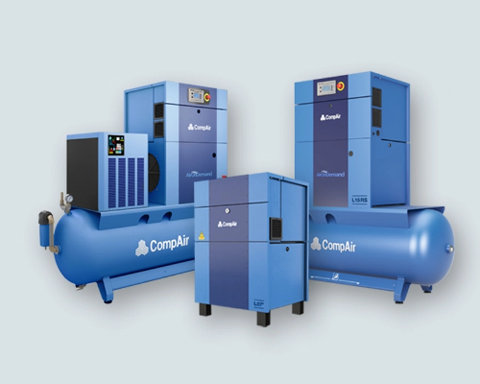 Залежно від індивідуальних вимог замовника, компресори можна комбінувати з різними опціями для забезпечення максимальної виробничої гнучкості. Комбіновані версії, що включають ресивер і (або) осушувач, є компактним рішенням, ідеальним для економії площі.
